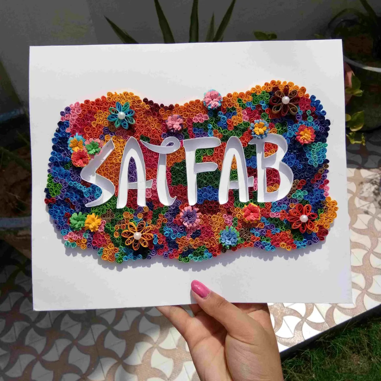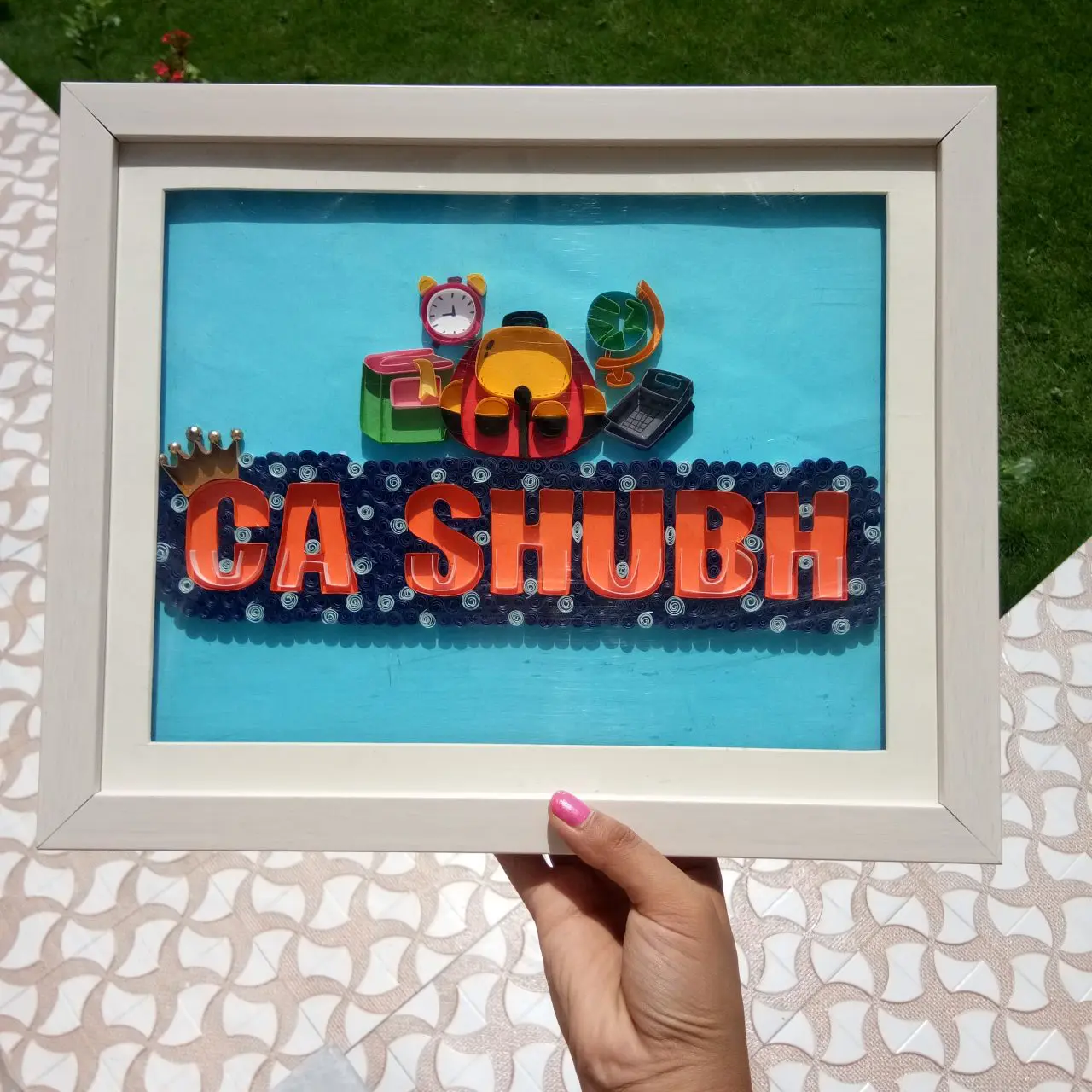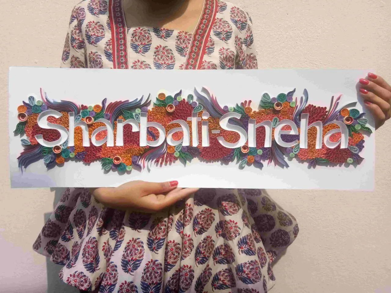 - Quilling Name Art – Our most requested product. These are personalised name frames, often designed with floral motifs, minimal shapes, or vibrant gradients. Ideal for birthdays, baby gifts, and housewarmings.