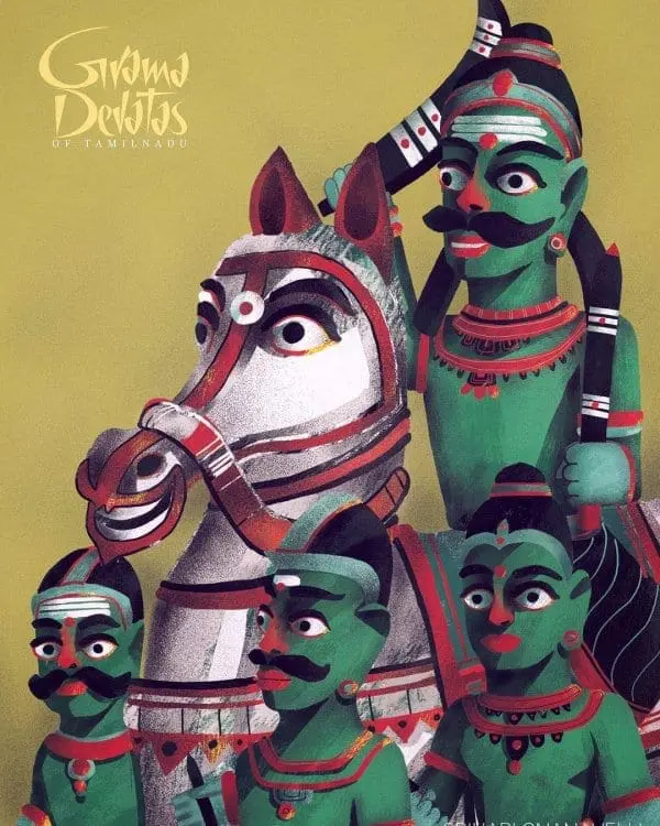 This book cover design by Srihari, constitutes the creative rendering of illustrations, novel typography and the layout. Since everything is made from scratch, it takes a good number of hours for the artist to design this. This book jacket is illustrated and designed, taking an inspiration from the village deities of Tamil Nadu. Get yourself a custom designed book jacket which is sure to be the element of attention for your book shelf!
