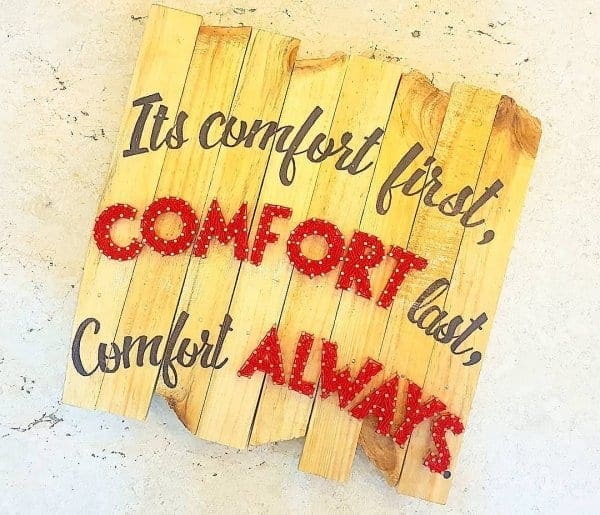 This Comfort Always String Art, simply put, involves the use of string, thread, wood and colorful wool as an art form. The brilliance of the art shines through when a delicate balance is achieved between the simplicity of the design and the intricate elaborateness of the thread configurations that form the body of the art. Another delightful characteristic of the art is the smooth flowing texture that is achieved by the spools of thread against the rugged rustic feel of the wood on which it takes form.