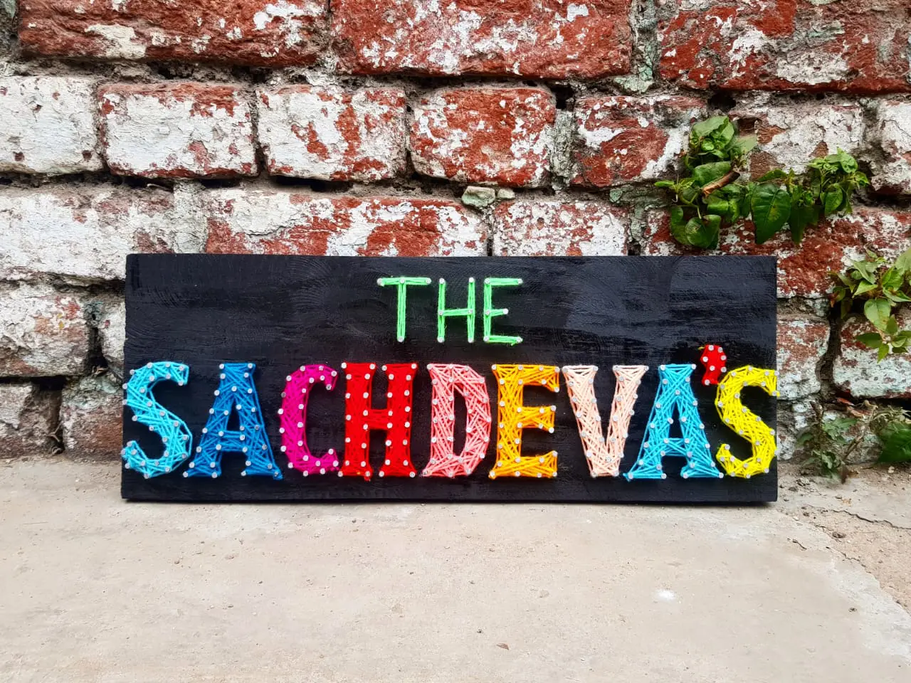 This Nameplate String Art, simply put, involves the use of string, thread, wood and colourful wool as an art form. The brilliance of the art shines through when a delicate balance is achieved between the simplicity of the design and the intricate elaborateness of the thread configurations that form the body of the art. Another delightful characteristic of the art is the smooth flowing texture that is achieved by the spools of thread against the rugged rustic feel of the wood on which it takes form.