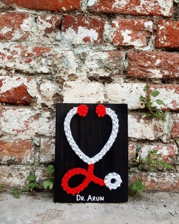 This Stethoscope String Art, simply put, involves the use of string, thread, wood and colorful wool as an art form. The brilliance of the art shines through when a delicate balance is achieved between the simplicity of the design and the intricate elaborateness of the thread configurations that form the body of the art. Another delightful characteristic of the art is the smooth flowing texture that is achieved by the spools of thread against the rugged rustic feel of the wood on which it takes form.